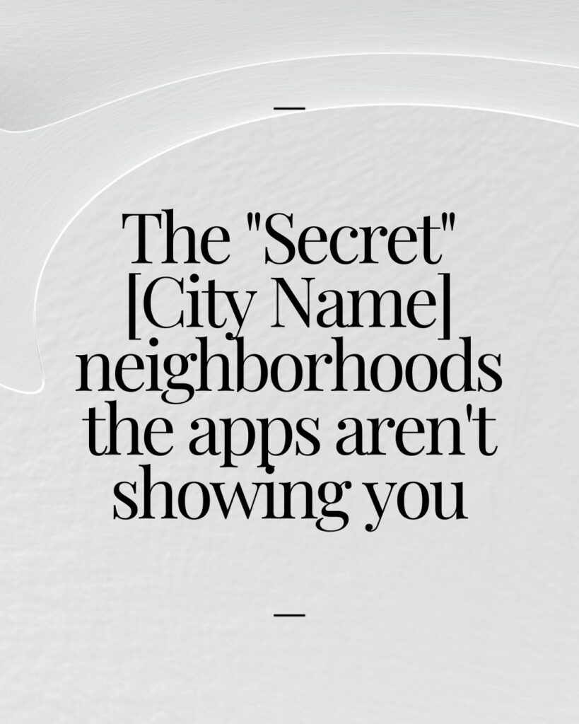 Every city has hidden gem areas that buyers overlook while chasing the obvious hotspots. Position yourself as the local expert who knows where the real value, and lifestyle, actually lives.